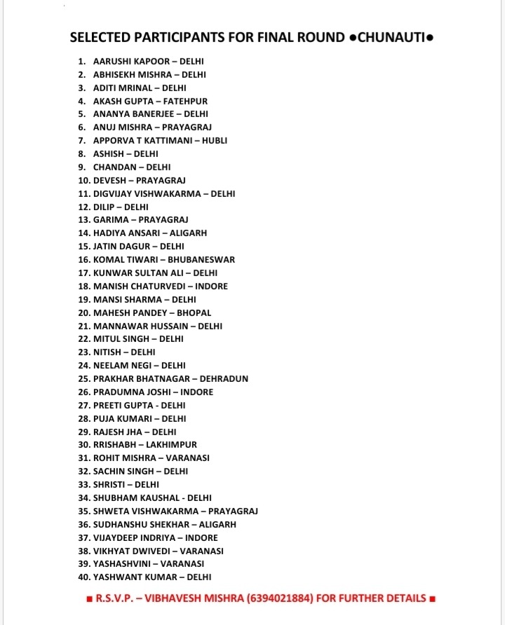 SELECTED PARTICIPANTS FOR FINALS